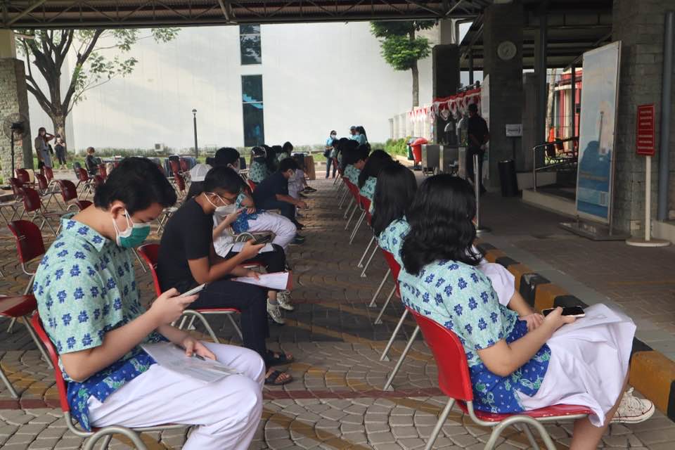 Yayasan Pendidikan Jaya mengadakan Vaksinasi lanjutan untuk pelajar berusia 12 sampai 17 tahun dan Umum (Masyarakat Sekitar) di Sekolah Global Jaya, Pondok Aren, Jumat (13/8/2021).