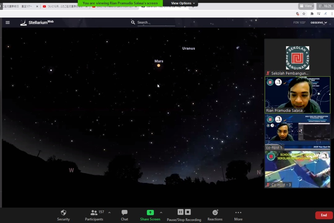 Pada tanggal 14 Desember 2020, School Science Center Sekolah Pembangunan Jaya bekerja sama dengan LAPAN Pasuruan menyelenggarakan kegiatan 2020 Year End Observation. Tujuan dari kegiatan ini,